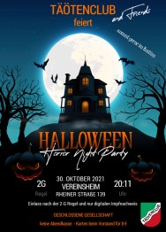 Der Täötenclub lädt ein zur großen Halloweenparty am Samstag den 30.10. ab 20:11 Uhr im Vereinsheim an der Rheiner Straße 139